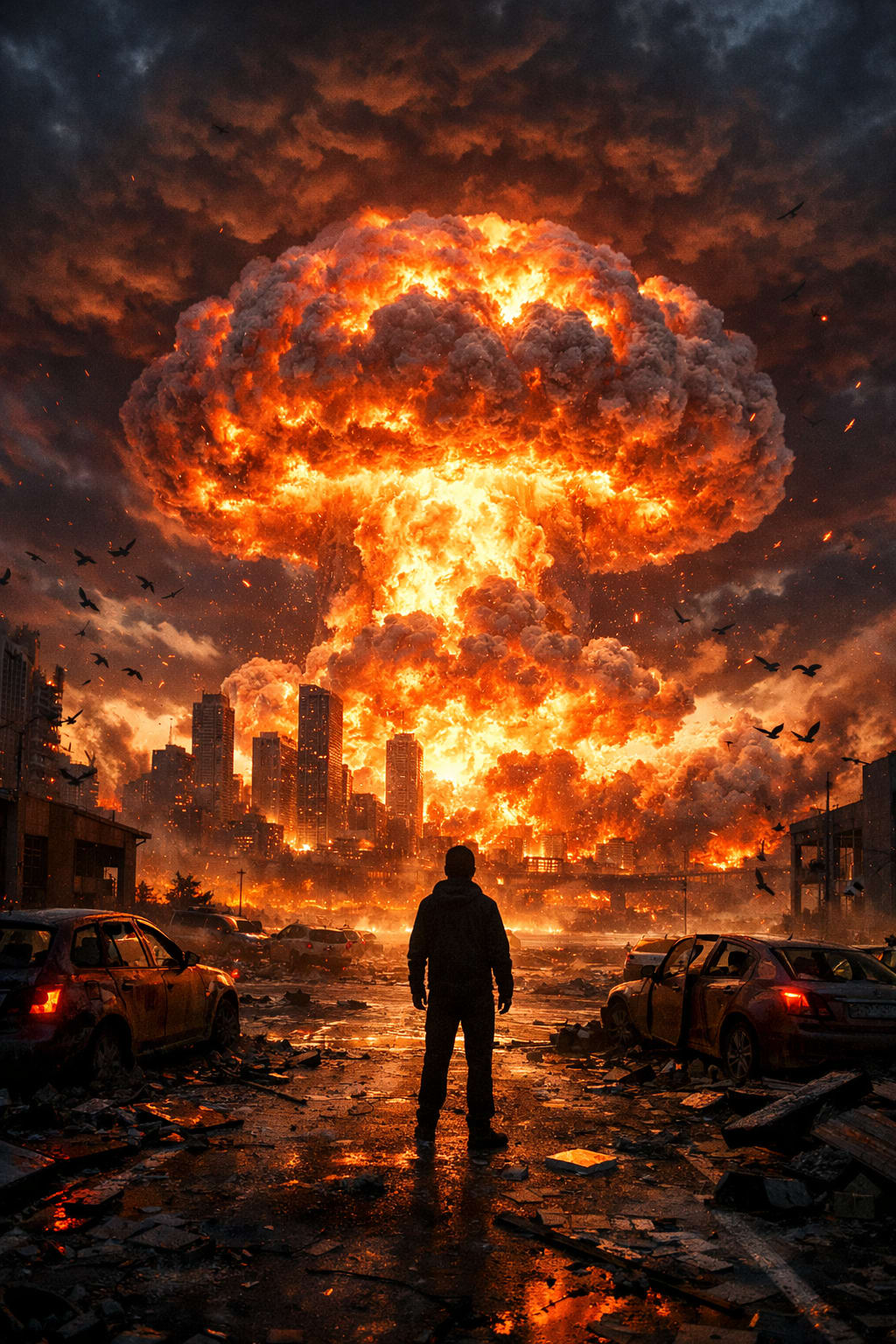 Following the flash comes the shockwave, a powerful wall of compressed air that moves faster than the speed of sound. This blast wave flattens buildings, shatters windows, and throws cars and debris through the air like toys. In a modern nuclear explosion, this destructive force can extend many kilometers from the center. In a large modern nuclear weapon—such as those measured in hundreds of kilotons—the severe destruction zone may reach 3–5 kilometers, while serious damage can extend 10–15 kilometers or more.