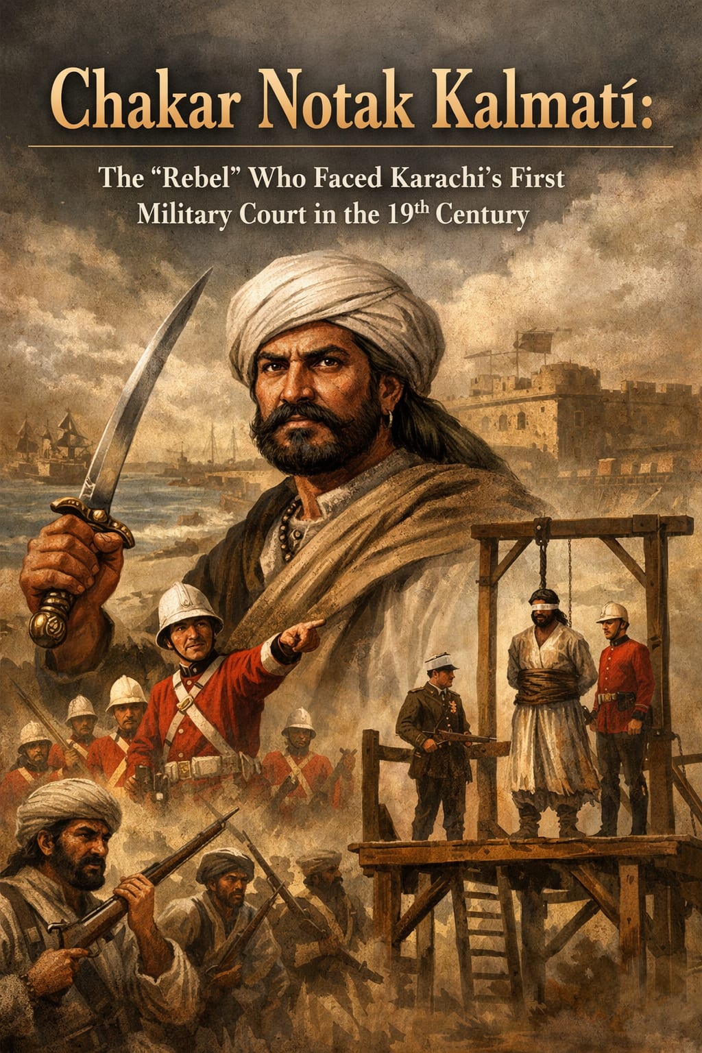 In the early decades of the 19th century, Karachi was far from the bustling megacity it is today. It was a small but strategically important coastal town whose control became crucial after the British East India Company expanded its influence in Sindh. Amid this transformation emerged a dramatic and largely forgotten story—the trial and execution of Chakar Notak Kalmatī, a local tribal figure who became the first person to receive the death penalty from Karachi’s earliest military court.